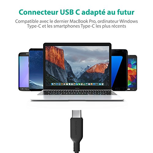 - Connecteur USB C adapté au futur: Compatible avec le dernier MacBook Pro, ordinateurs Windows avec Type-C et les smartphones récents Type-C ( Samsung galaxy s8, Samsung galaxy s8 plus, LG G5 G6, Lumia 950XL 950, Google Pixel, Pixel XL, OnePlus 2, OnePlus 3, OnePlus 3T, Moto G5 Plus, Moto Z / Moto Z Force, Huawei P9, Huawei P9 plus, Huawei Mate 9, Google Nexus 5X ,Nexus 6P, Nintendo Switch, New Macbook 12 inch, New Macbook Pro )