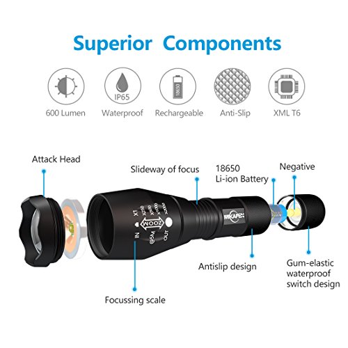 - 【SUPER BRIGHT & LONGUE DURÉE】 LED-T6 Ampoule LED, mise au point réglable, Zoom arrière 500-700 Lumens, Zoomer 700-800 Lumens, La batterie peut être utilisée pendant 4-6 heures.et peut être rechargerd pour environ 500 fois