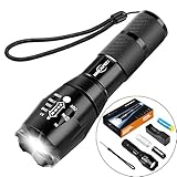 Rechargeable Lampe Torche LED Puissante,lampe de poche avec chargeur USB et 18650 batterie, meilleure torche pour le camping, la randonnée, les urgences auto, et la réparation de la maison