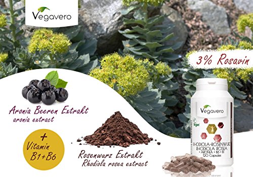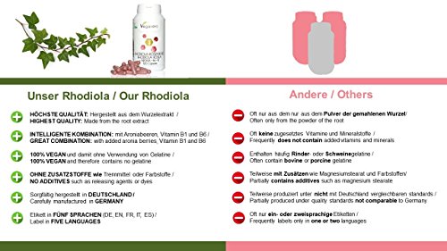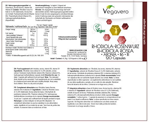 Rhodiola Rosea + Aronia + B1 + B6 | 120 Capsules *Approvisionnement pour 4 mois* | Contient aussi | Concentration – Performance – Endurance – Anti-âge | 100% végétalien sans Additif et Gélatine | Remboursement garantie en cas d’insatisfaction | Fabriqué en Allemagne | 1 Boite