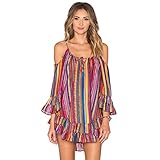 FIND Cold Shoulder Stripe Robe Femme, Multicolore...