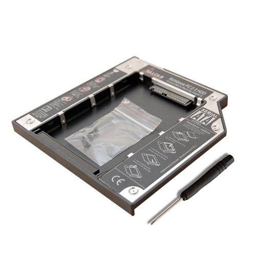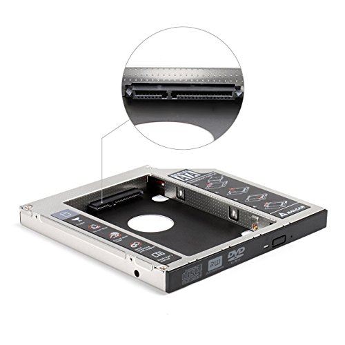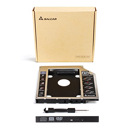 Utilisez la baie de drive précédent comme un disque dur avec Salcar HDD cadre de montage. Pour augmenter la capacité de stockage de votre ordinateur portable de la manière la plus simple et sans reconstruction majeure.
