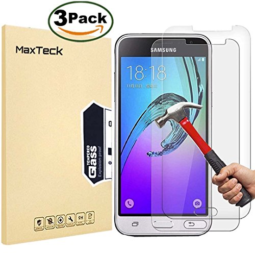 [3 Pièces] Verre Trempé Samsung Galaxy J3 2016, MaxTeck Film Protection en Verre trempé écran Protecteur Vitre- ANTI RAYURES - SANS BULLES D'AIR -Ultra Résistant Dureté 9H pour Samsung Galaxy J3 2016