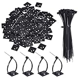 Paquet de 100 Zip Tie Adhésifs Noir Supports...