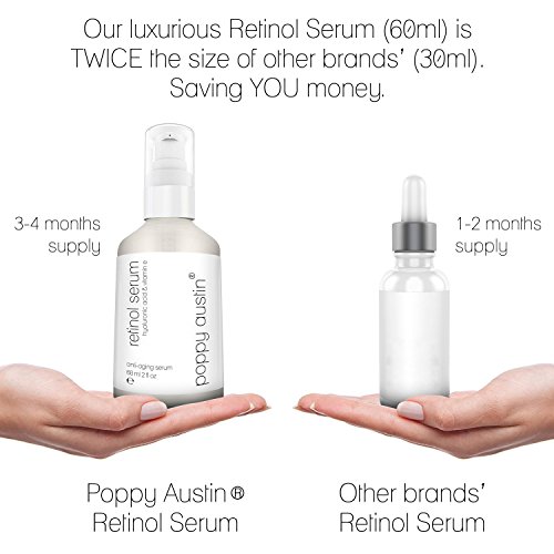 Sérum au Rétinol par Poppy Austin® - GRAND Flacon de 60ml - Rétinol 2,5%, Vitamine E, Acide Hyaluronique, Huile Jojoba Bio - Meilleur Sérum Anti Vieillissement Visage, Cou, Contour des Yeux 2018