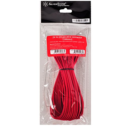 SilverStone SST-PP07-MBR - 30cm Carte mère 24pin vers 24pin Cable d'extension manchonné, rouge