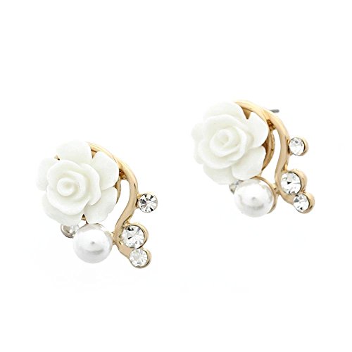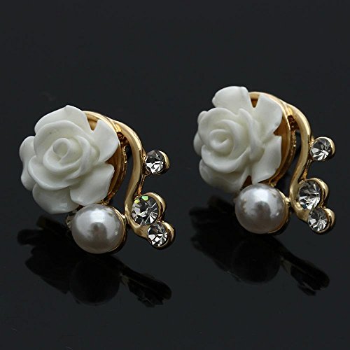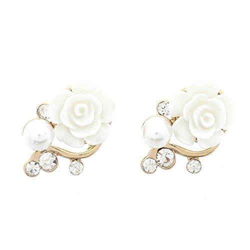 SODIAL(R) Paire Femmes Boucle d'oreille Resine blanc mignon Rose Fleur strass brillant Faux Perle