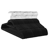 SONGMICS Cintres en velours, Lot de 50, Crochet pivotant à 360°, Antidérapant, pour Costumes / Chemises / Robes / Cravates, Noir, CRF50B