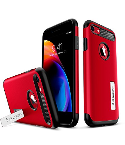 Coque iPhone 7, Coque iPhone 8 / 7, Spigen® [Slim Armor] AIR CUSHION [Crimson Red] Double couche / Protection Extrême / Anti-Choc Coque Pour iPhone 7 (2016) / iPhone 8 (2017) - (042CS21519)