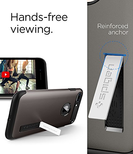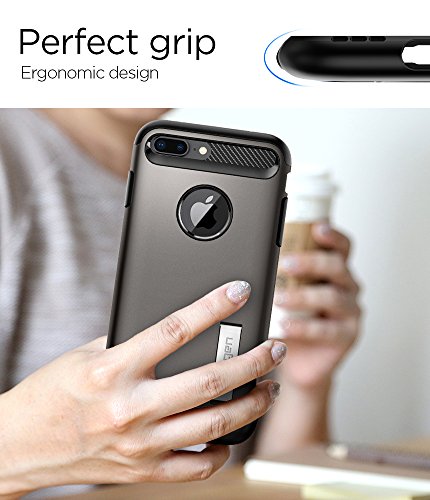 Spigen Coque Slim Armor for iPhone 7 Plus gun metal La Coque renforcée Spigen Slim Armor est parfaite pour vous offrire une protection permettant une meilleure absorption de l'impact . Les nouveaux coins à la technologie coussin d'air réduisent l'épaisseur du boîtier tout en offrant une protection optimale pour votre iPhone - Protection Extrême contre les chutes et les rayures Protection des bords grâce à la technologie innovante à coussin d'air (Air Cushion Corners) Double couche de protection en matériaux rigides et souples (TPU et polycarbonate) Parfaitement découpée : toutes les fonctions de votre téléphone portable restent accessibles sans qu'il soit nécessaire de retirer la coque. Avec fonction support Compatible avec verre trempé de protection d'écran Spigen
