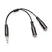 Le séparateur combiné de prises de casque/microphone MUYHSMFF (3,5 mm à 4 positions vers double 3,5 mm à 3 positions) est un adaptateur séparateur de casque comportant un connecteur mâle de 3,5 mm (TRRS) et deux connecteurs femelles de 3,5 mm (TRS), ce qui vous permet d'ajouter une entrée microphone en mono et une sortie en stéréo sur votre PC ou votre ordinateur portable, par le biais d'un seul port audio de 3,5 mm. Certains des derniers ordinateurs portables de Apple et de Dell ne comportent qu'un port audio de 3,5 mm (4 positions) prenant en charge à la fois l'entrée et la sortie audio. Ce câble novateur pour séparateur de casque divise le port audio en deux ports distincts, un pouvant servir d'entrée pour microphone et l'autre pour brancher des haut-parleurs externes (sortie). Avec son design compact mais robuste, le câble pour séparateur de casque constitue la solution idéale pour les applications demandant une bonne portabilité. Il prend très peu d'espace dans la pochette de votre ordinateur portable. Cet adaptateur n'est pas un câble répartiteur audio en Y. Il ne peut pas servir à diviser la sortie audio en deux ensembles distincts de casques ou de haut-parleurs. Certains ordinateurs portables et appareils portables ne fonctionnent pas avec tous les microphones externes. Le problème provient généralement d'une différence d'impédance entre le microphone et l'appareil. Il s'agit d'une incompatibilité matérielle, et non pas d'une limitation de l'adaptateur MUYHSMFF. Pour assurer la bonne détection du matériel, branchez le casque externe à l'adaptateur avant de connecter ce dernier à l'ordinateur ou à l'appareil portabl