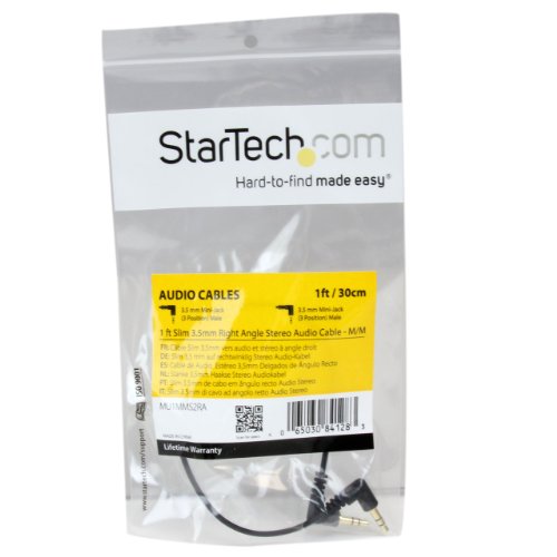 - StarTech.com Câble audio stéréo Slim 3,5 mm à angle droit de 30 cm - M/M. Longueur de câble: 0,3 m
