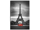 Cadre moderne Tour Eiffel et voiture rouge-...