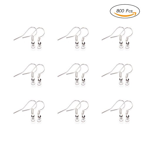 Stonges 800 pcs Crochets Boucles d'oreilles en acier inoxydable avec boule et bobine hypoallergénique oreille Fil Poisson Crochets pour DIY Bijoux Silver