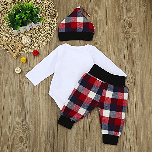 Sunenjoy 3 Pcs enfant Infantile Bébé Garçon Fille Lettre Vêtements Ensemble Romper + Plaid Pantalons + Plaid Chapeau Tenues (0-6 Mois)