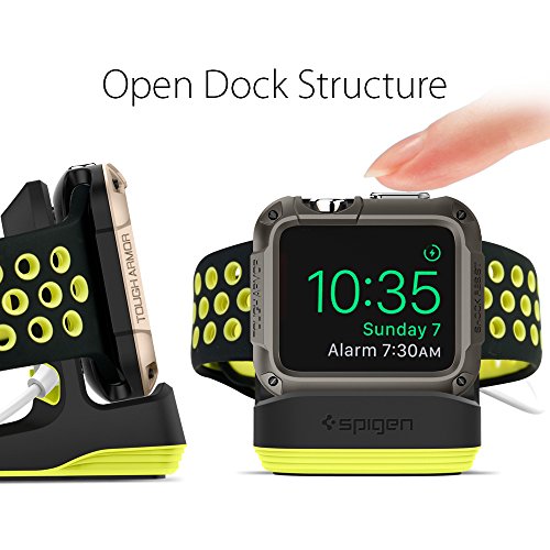 Support Apple Watch, Spigen [Station de Chargement] [Prime TPU] Support Apple Watch 2 Compatible avec Apple Montre mode Nightstand pour Apple Watch Series (2015), Apple Watch Series 2(2016), Apple Watch Series 3(2017), Apple Watch Sports, Support de montre Apple - S350 Volt Black