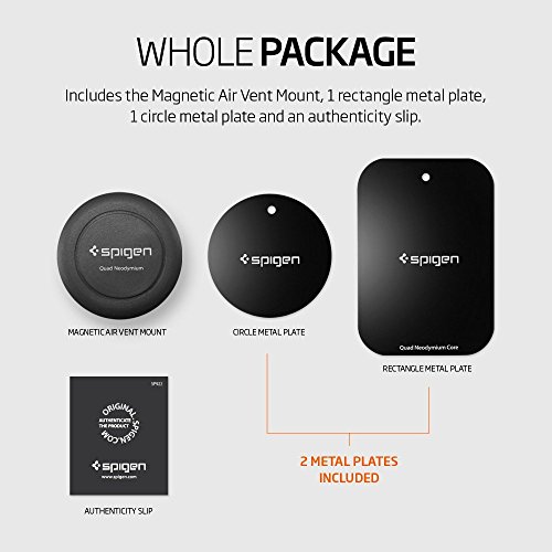 Support Telephone Voiture, Spigen® [ Grille d'aeration aimante ] Support Voiture [Quad Neodymium Core] Support telephone aimante de voiture pour iPhone 8/8 Plus/6s/6s Plus/6/6 Plus, Galaxy Note 8/5, Galaxy S6 Edge Plus, Nexus 5x / Nexus 6P et Plus - Noir