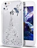 Coque pour iPhone 7,Coque Étui Case pour iPhone 7, Surakey Coque iPhone 7 Ultra-Mince Glitter Paillette TPU Silicone Étui Housse Téléphone Couverture TPU Clair éclat Bling Brillant Scintillant Cristal Glitter Diamant strass avec Beau Ange Papillon motif Etui Housse Mince Silicone Transparent pour iPhone 7 Coque de Protection en TPU avec Absorption de Choc Bumper et Anti-Scratch, (Ange Argent)