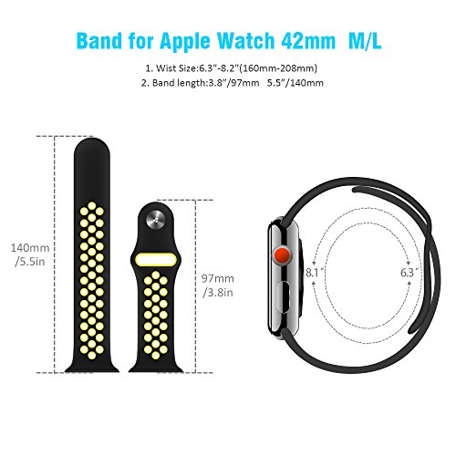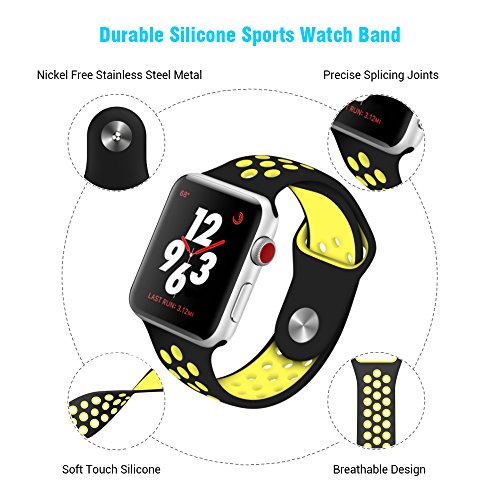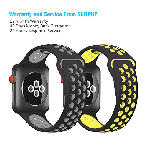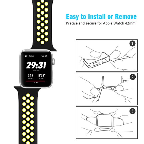 SURPHY Bracelet Apple Watch 42mm, Silicone Montre pour Sport iwatch, Bracelet de remplacement avec boîtier antichoc pour Apple Watch Série 3, 2, 1, Nike+ Edition, Noir Jaune