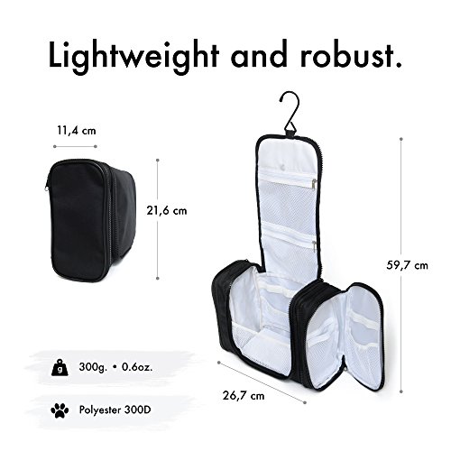 - ✔ RESISTANTE. Conçue pour toute une vie de voyages. Sa couche extérieure est élaborée en polyester 300D très résistant aux rayures et à l'eau. Le compartiment principal est revêtu d'une couche étanche (en cas de flacons qui coulent), et d'un fond rigide (pour maximiser le maintien - peut être enlevé pour plus de place). Les fermetures éclair sont de grande qualité.