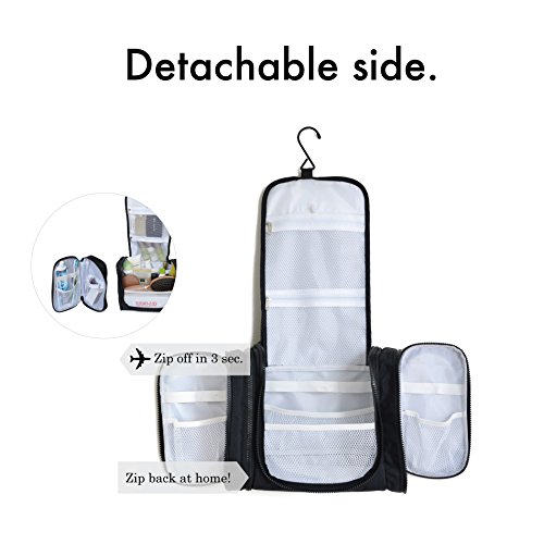 - ✔ 100% NOMADE. Pendant votre voyage, détachez la poche latérale pour garder vos produits indispensables (maquillage, médicaments, brosse à dent) à portée de main, dans le train ou l'avion. A votre arrivée, accrochez votre vanity où vous voulez à l'aide du crochet métallique antidérapant.