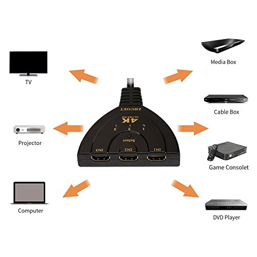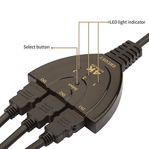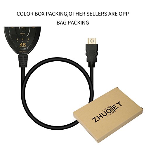 Zhuoet 3 Ports HDMI Switcher Box, Résolution 4K, Plus Stable, Utilisation Pratique et Super Compatibilité!