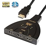 - ➤Convenient à utiliser: 4k Hdmi Switch pas besoin d'énergie, avec 3 indicateurs LED et 1 bouton de sélection, l'alimentation est automatiquement transférée par le biais du signal 5V dans le câble HDMI, commutation entre trois sources à un affichage.
