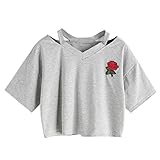 VovotradeFemmes Rose Brodé Casual Courtes...