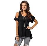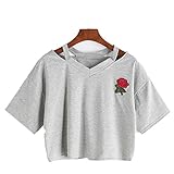Vertvie Femme T-Shirt Court Col Hollow Top...
