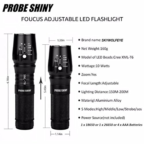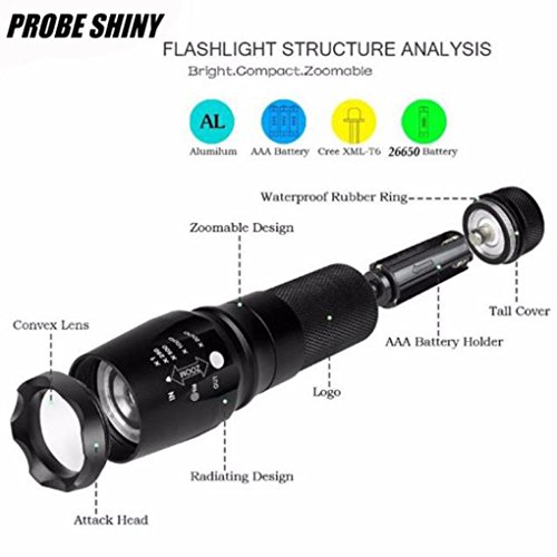 - 【Alimentation : 1 x 18650 ou 3xAAA ou 1 x 26650 (inclus batterie 18650 1PCS)】Torche Lampe de Poche LED Zoomable et Rechargeable avec 5 Modes, Super Lumineuse Intensité Ajustable