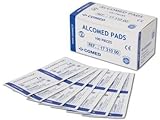 Compresses imprégnées d'alcool à 70% pour préparer la peau avant injection. A usage externe uniquement. Sachet individuel 50 x 50 mm. 100 pièces.