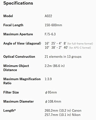 Tamron 150-600 mm / F 5.0-6.3 SP DI VC USD G2 Objectifs