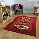 Tapis Aztèque Ethnique Rouge Terre Cuite,...