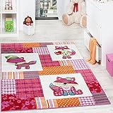 NOUKIES Tapis de Coton Framboise/Grege Motif...
