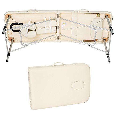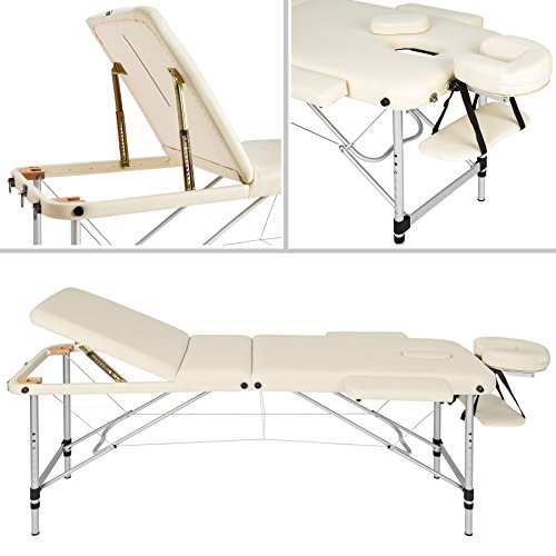 TecTake Table de massage pliante aluminium cosmetique lit de massage portable beige + housse de transport