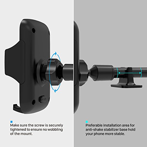 - 【Mise à jour de support】: jusqu'à 297 mm aluminium de long bras du telephone support qui rapprocher le telephone du conducteur et vous permettez de toucher votre appareil plus facilement . le support mobile télescopique pivotant à 360 ° ça vous permet d'ajuster le support voiture à la meilleur vue .