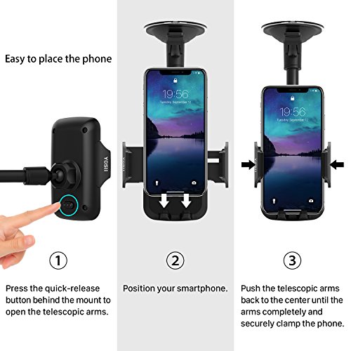 Support Téléphone Voiture Ventouse YOSH Long Bras (longueur à 297mm ) Support sur Pare -brise avec 360° Rotation pour Universel Smartphone Appareil iPhone 8/8 Plus /X / 7/7 Plus 6 /6S/ 6 Plus 5/5S/5C/SE Samgsung Galaxy S8/S7 Edge/S6 Edge HTC Huawei LG Sony Nokia, GPS, MP3. etc (largeur de 4 – 6 pouces)