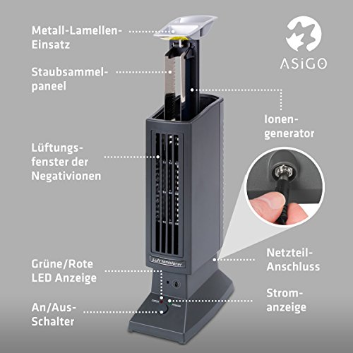 - ✅ FACILE À NETTOYER ET CONSOMME PEU: Aucun changement de filtre est requis! Rincez le purificateur d'air avec de l'eau et nettoyez le avec la petite brosse fournie | Consommation électrique: 1,5 W. Numéro du produit: 90690.