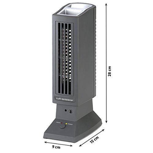 Tevigo Purificateur d'air purificateur efficace - tout dans un silence total! Appréciez l'air frais purifié et enrichi en ions oxygène dans les grandes pièces, à la montagne, à la mer ou dans votre bureau, l'air contient une quantité importante d'ions négatifs. Notre ioniseur produit le même effet. De plus, la fumée de cigarette, les odeurs de nourriture, la poussière et le pollen habituellement chargés en ions positifs, sont attirés et neutralisés par l'appareil. Ce ioniseur fonctionne sans moteur à ventilateur ni cartouches filtrantes onéreuses, il est donc très silencieux et les coûts d'exploitation sont particulièrement avantageux. Idéales pour les personnes allergiques. Comment nettoyer l'appareil? La cartouche conçue pour contenir les captures de particules et le générateur d'ions, se retire aisément pour faciliter le nettoyage. Veuillez nettoyer les captures de particules une fois par mois: débranchez l'appareil et retirer la cartouche de lu appareil.- en utilisant la brosse incluse avec lu appareil, nettoyez les capteurs de particules. Spécifications - Champ d'action : jusqu'à 45 m² - Couleur : anthracite - Dimensions : (L x l x H) 150 x 90 x 280 mm - Poids : 950 g - Puissance absorbée : Max. 15 W - Tension d'alimentation : 230 V/50 Hz - Marque : tevigo