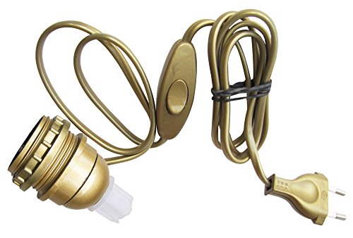 Adaptateurtype: Adaptateur Bouteille E27 + Interrupteur Fil Et Fichepuissance: 150W Maxi - 230Vtension: Fiche 2 Pôles 6Afil H03Vvh2-Fraccord À Ailettes Et Douille Demi-Filetée Avec Bague De Fixation Pourabat-Jourpour Équipement Bouteille,Potiche...Longueur Fil: 1,50Mdiamètre Fil: 2X0,75Mm²Coloris: Or.