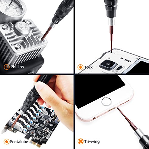 - Tournevis multi-magnétique: Le jeu de tournevis de précision 60 en 1 est conçu pour entretenir tous les ordinateurs portables, téléphones, consoles de jeux et autres appareils électroniques populaires.