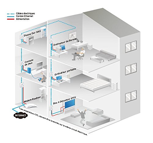 - Transferts de données jusqu'à 500 Mbps via le circuit électrique, idéal pour la diffusion de vidéos HD