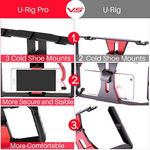 - OBTENEZ DE L'ÉCLAIRAGE ET DES ACCESSOIRES DE MICROPHONE: Nouveau U Rig Pro avec 3 supports de chaussures standard et 2 filets Universal 1/4 "-20, Vous pouvez monter des lumières LED et microphone vidéo sur l'outil Rig.A Fantastic pour les vidéastes mobiles, les cinéastes iPhone