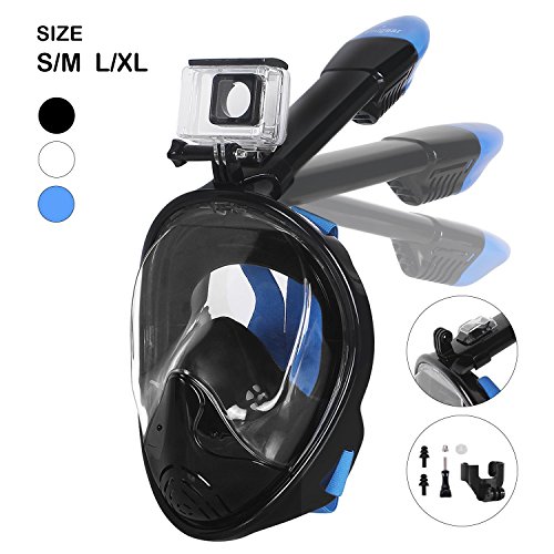 Masque de Plongée, Unigear Masque Snorkeling Plein Visage 180° Visible, Antibuée et Anti-fuite Sous-Marine, Snorkel Masque avec la Monture pour Caméra Gopro (Noir, L/XL)
