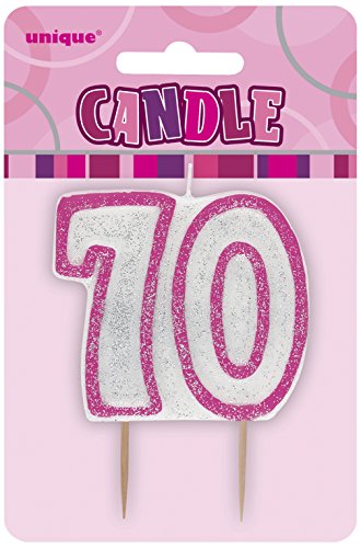 Unique Party - 34408 - Bougie - 70ème Anniversaire - Rose Glitz