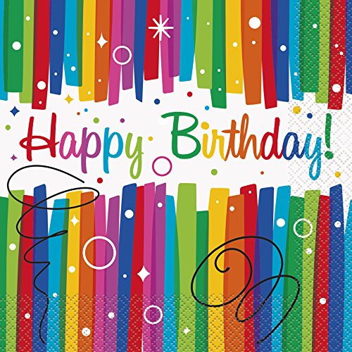 Lot de 16 serviettes d’anniversaire motif rubans arc-en-ciel (49562).