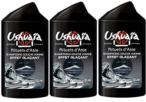 Ushuaïa - Rituels d'Asie Shampooing Douche Homme Effet Glaçant à la Roche Volcanique - 250 ml - Lot de 3