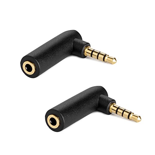 3.5mm femelle à 3.5mm mâle angle droit TRRS adaptateur. Pour une utilisation avec 3.5mm RRT câbles. 4 pôles - TRRS prend en charge les périphériques à la fois audio et microphone ou vidéo. Conception mince pour une utilisation avec des tables / téléphones et autres appareils utilisant des étuis de protection