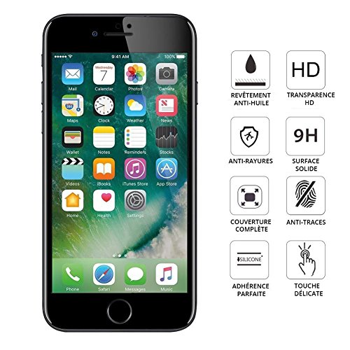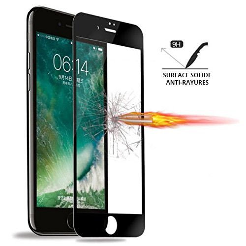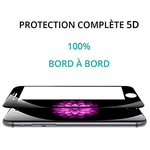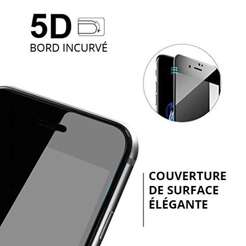 - Protection d'écran en verre trempé très solide pour iPhone 7 / 8 de couleur noire. Après le verre trempé 2.5D, 3D et 4D, voici la 5D qui recouvre les courbes de votre Smartphone de bord à bord incurvé (protection complète) et protège votre écran des rayures.