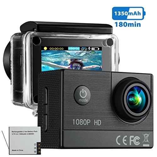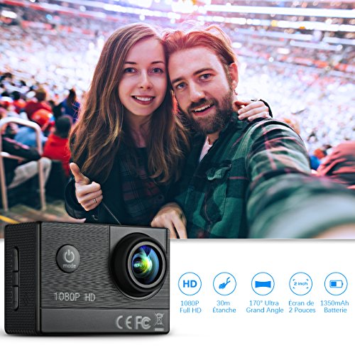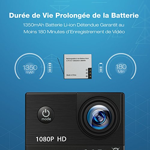 Cette caméra d'action est importante et nécessaire pour les amateurs de sport en plein air qui souhaitent assister à un moment incroyable et à couper le souffle lors du surf, de la natation, de l'escalade, du cyclisme, du saut à l'élastique, etc. Nos Caractéristiques Uniques: (1) Durée de vie de la batterie longue durée: la capacité de 1350mAh permet une prise de vue continue et un enregistrement de vidéo au moins 180 minutes. Prenez notre caméra d'action pour enregistrer le moment important de votre famille et vos amis.
